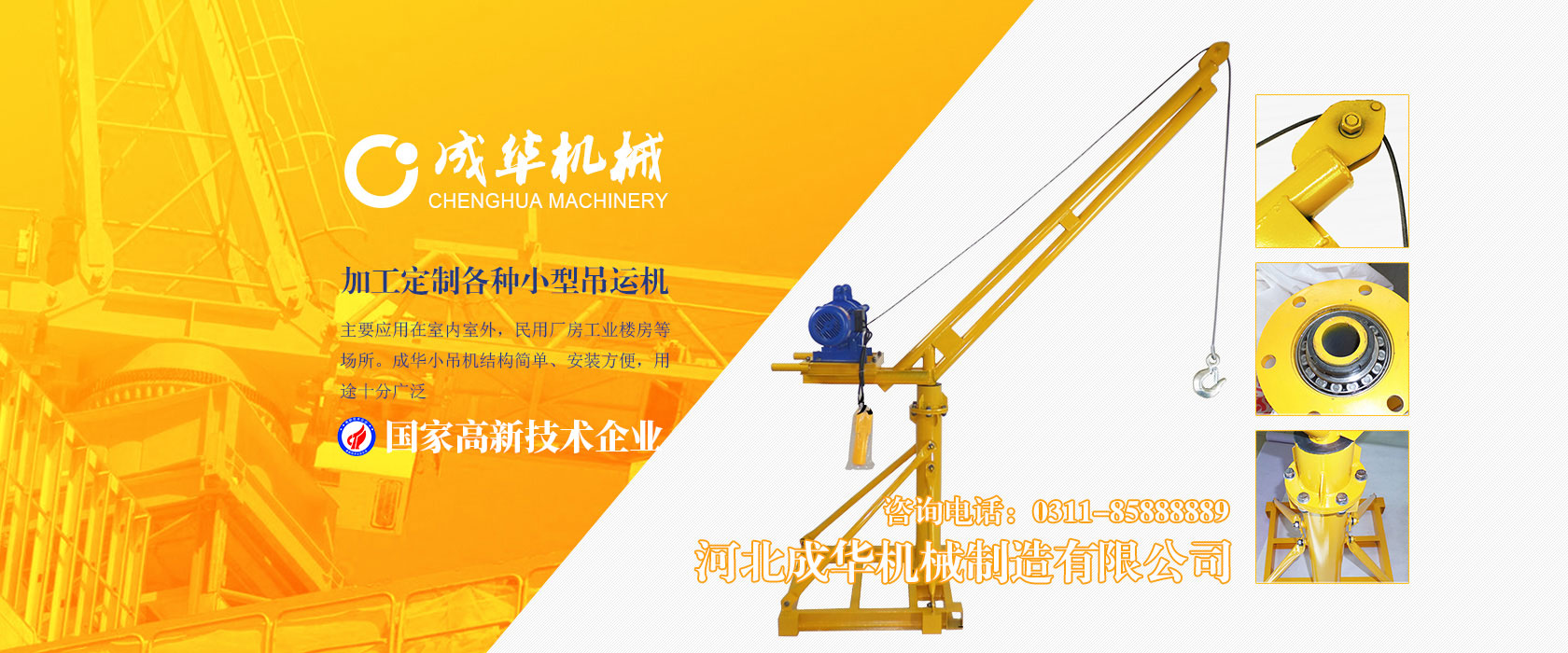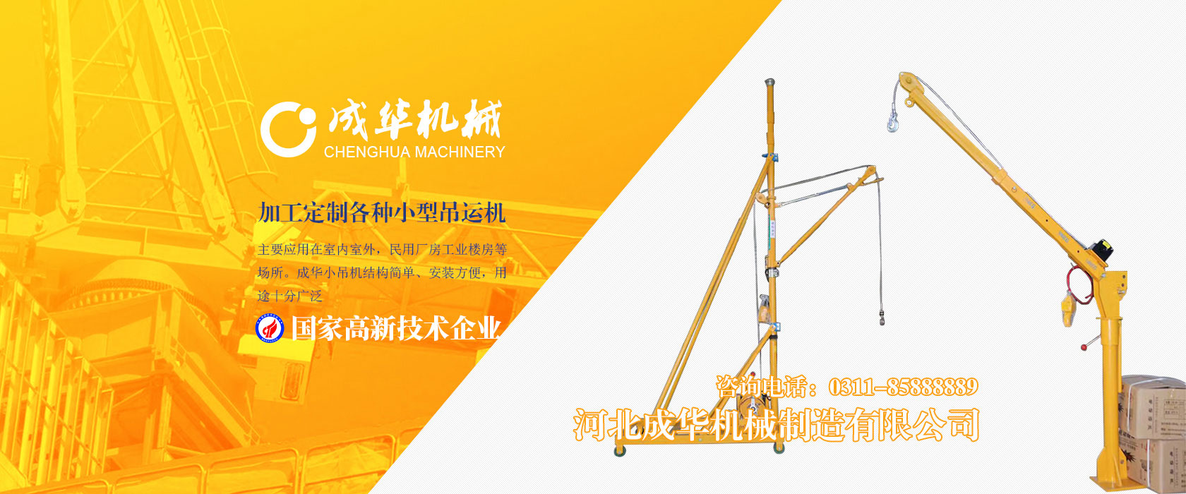 河北成華機(jī)械制造有限公司為國(guó)家高新技術(shù)企業(yè),旗下吊運(yùn)機(jī)制造廠(chǎng)是家專(zhuān)業(yè)生產(chǎn)制造便攜式小吊機(jī)、手提式小吊機(jī)附屬工廠(chǎng),我廠(chǎng)產(chǎn)品主要應(yīng)用在室內(nèi)室外,民用廠(chǎng)房工業(yè)樓房等場(chǎng)所。成華小吊機(jī)結(jié)構(gòu)簡(jiǎn)單、安裝方便,用途十分廣泛,小吊機(jī)產(chǎn)品被廣泛應(yīng)用于機(jī)械制造、電子、汽車(chē)...